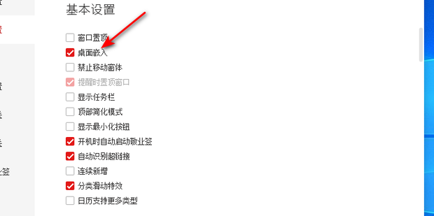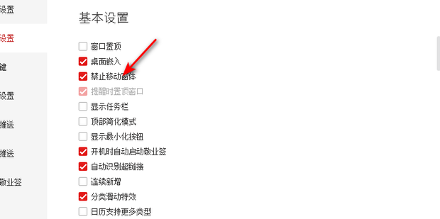4、也可以同時點擊“禁止移動窗體”,使便簽記事本在電腦桌面上無法移動。