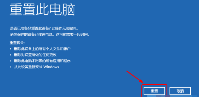 注意事項:如果提示無法重置,或者重置后問題依舊,說明遇到了靠電腦自己無法修復的故障,可以嘗試方法二的借助u盤重裝系統解決。