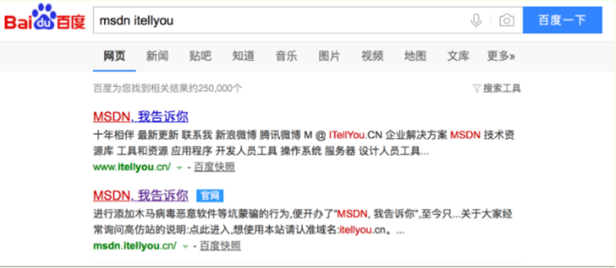 6、百度搜索msdn itellyou點擊進入。