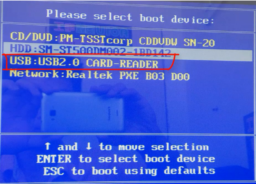 8、開機后按熱鍵進入bois,選擇USB選項,回車。