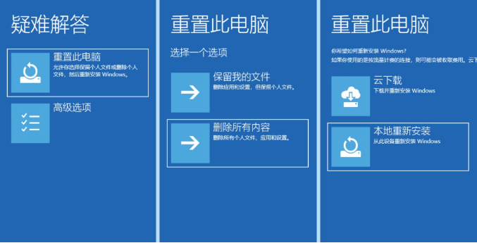 點擊重置此電腦 - 刪除所有內容 - 本地重新安裝。