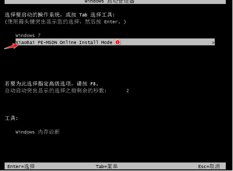 3、在開機選項界面,自動進入xiaobai-pe系統。