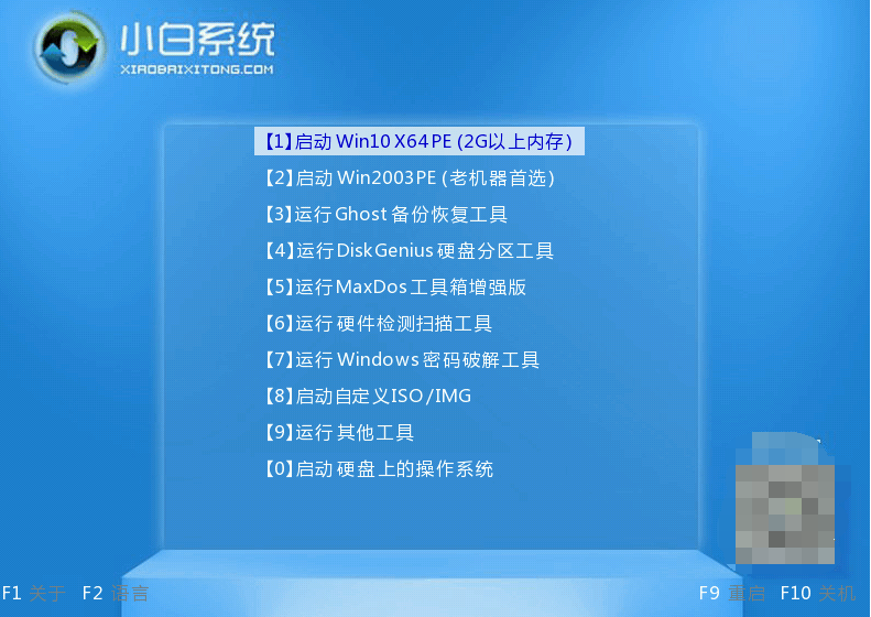 來到開機選項界面,如圖示,選擇第二項進入xiaobai-pe系統。