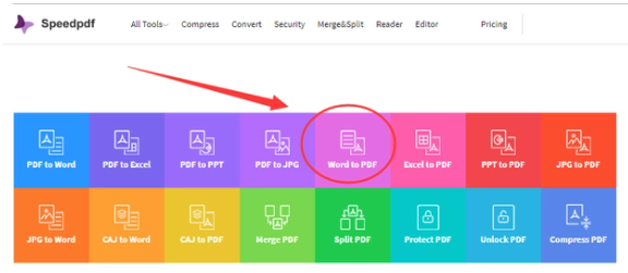 1、打開瀏覽器搜索speedpdf,就可打開其在線轉換官網,點擊首頁界面推薦中的“Word to PDF”即可。