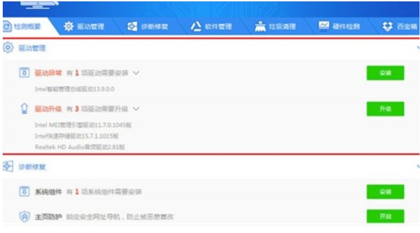 3、這時可以看到當前電腦中出現驅動異常與需要進行升級的驅動,直接點擊安裝即可。如果沒有出現可安裝的打印機驅動,首先需要確認自己的打印機是否正確的連接到電腦上,之后再進行一次檢測。