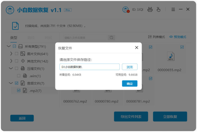 5、期間確認好要恢復的文件保存路徑,點擊確定。