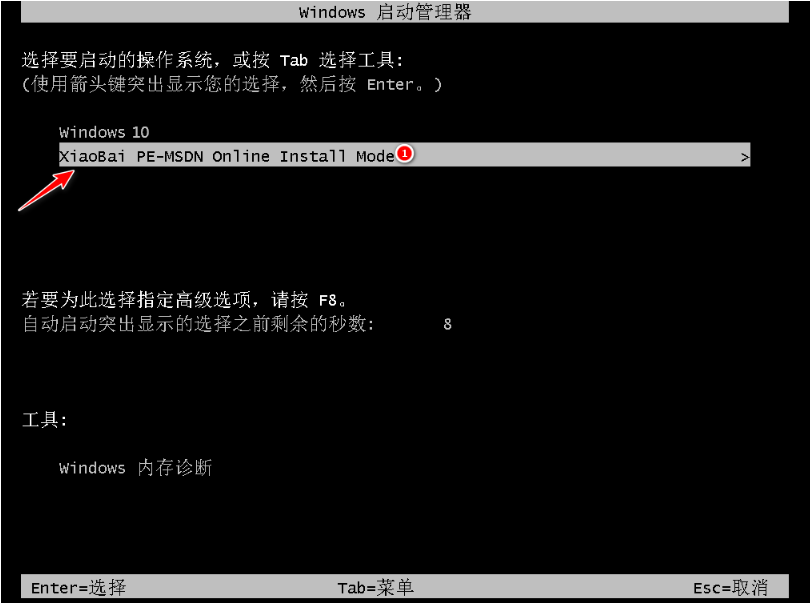 來到開機選項界面,如圖示,選擇第二項進入xiaobai-pe系統。