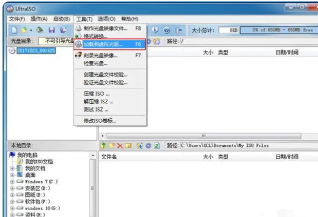 2、打開軟件 點一下“專用工具”挑選 “載入到虛擬光驅”。