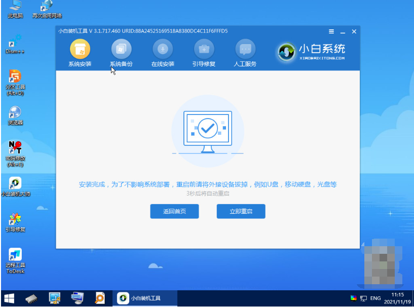 2、當軟件自動下載系統鏡像和部署環境完成后,自動重啟電腦。