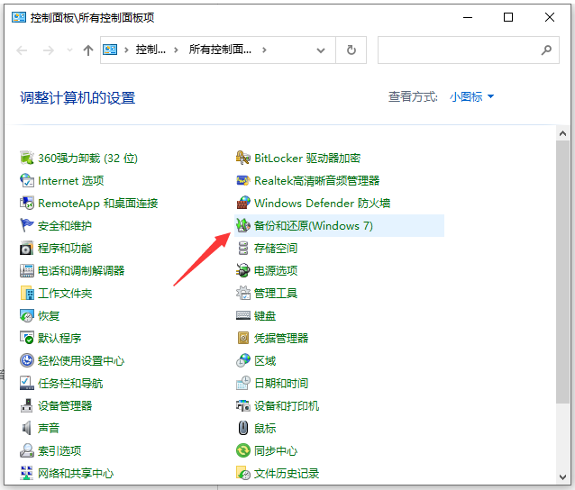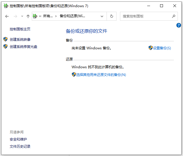 方法二:使用系統自帶的備份和還原功能