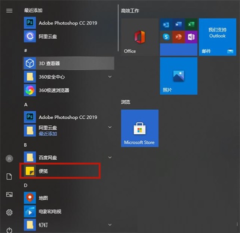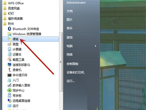 3.也可以在開始菜單中找到“便箋”,并打開。