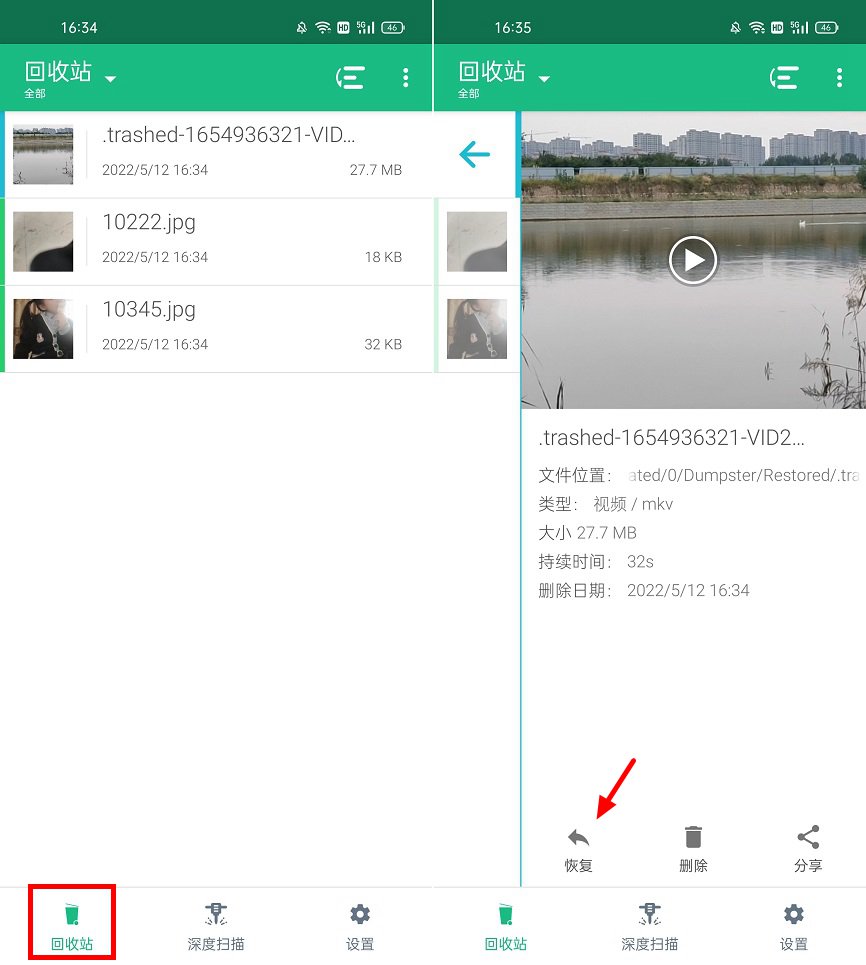 軟件版本:dumpster安卓回收站 v3.15.408.0b66