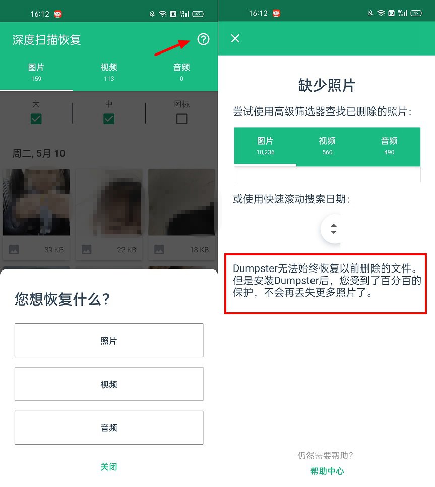 6、最后值得一提的是,Dumpster回收站APP無法保證之前被刪除的文件都能召回,但安裝Dumpster之后,APP宣稱你的手機中文件會受到百分百的保護,不會再丟失更多的文件。