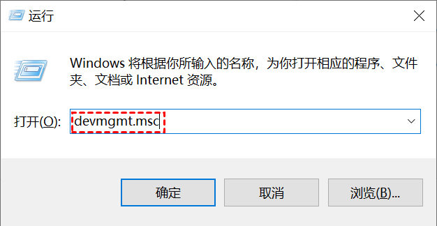 1. 點擊Win+R并輸入devmgmt.msc以啟動設備管理器。