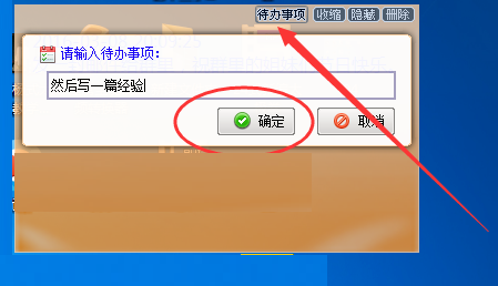 5、如果要添加信息,單擊代辦的事按鈕,輸入文字,單擊確定,這樣就能提示你要完成的工作。