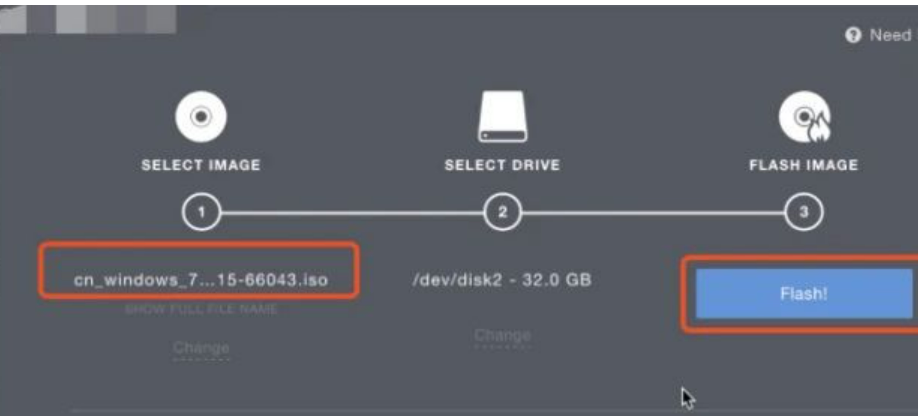 5、打開balenaEtcher for mac,選擇windows鏡像文件,然后點擊flash,等待完成.