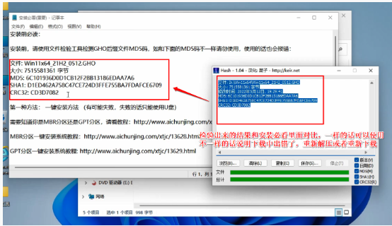 5、打開安裝必看,和文件檢測工具里面的MD5對比,一樣的話可以繼續安裝,不一樣的話說明GHO文件已經損壞,這里需要重新解壓或者重新下載系統文件。