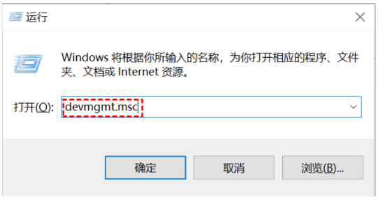 1、點擊Win+R并輸入devmgmt.msc以啟動設備管理器。