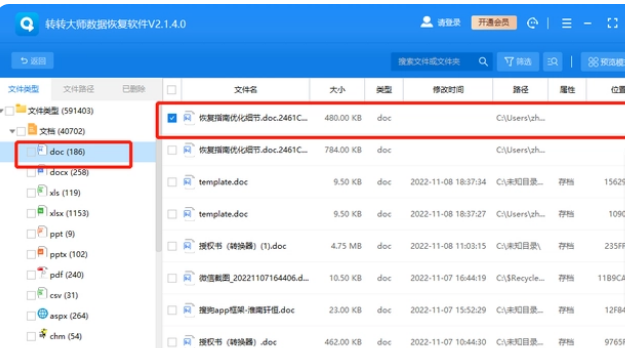 4.在軟件掃描結束之后,可根據文件類型,找到被刪除的文件,選中文件后,點擊【恢復】即可。