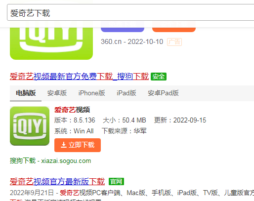 總結:使用電腦瀏覽器直接搜索愛奇藝即可下載此軟件。