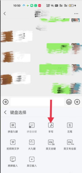 打開輸入框,點擊鍵盤,選擇手寫輸入法。