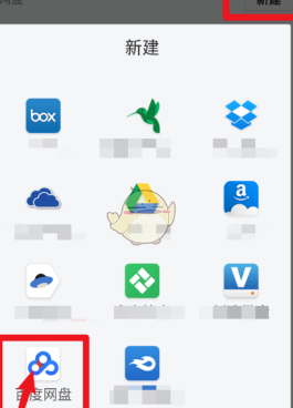 3、進入到網盤之后,點擊右上方的新建按鈕,在新的窗口中選擇百度網盤。
