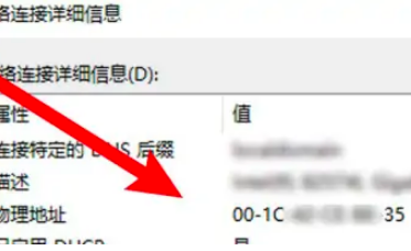 5.彈出窗口,查看到物理地址信息,這個就是mac地址了。