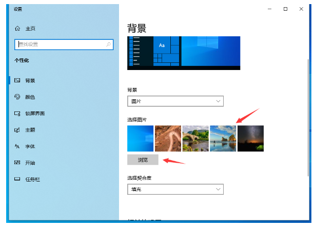 2.點擊背景,可以選擇系統自帶或者點擊“瀏覽”自定義背景圖片。