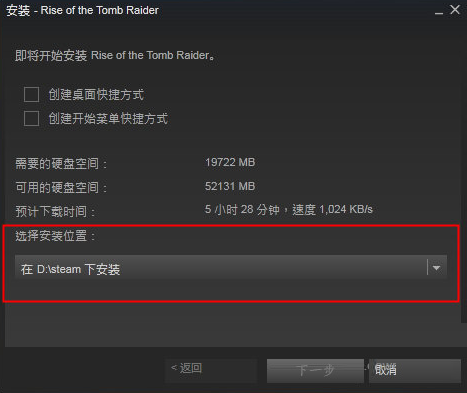 之后在下載游戲之前steam提示游戲的安裝目錄,默認是設置steam庫位置。