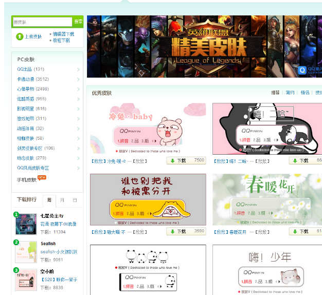 2.點擊“更多精美皮膚”后我們就會來到QQ輸入法的皮膚平臺,在這兒找到自己喜歡的皮膚后下載即可。