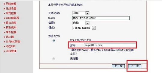 4、在自己設置無線網絡名稱和密碼,點擊下一步。