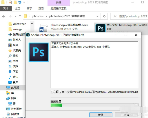 3、解壓完成點擊打開文件夾,找到PS圖標點擊進行安裝。