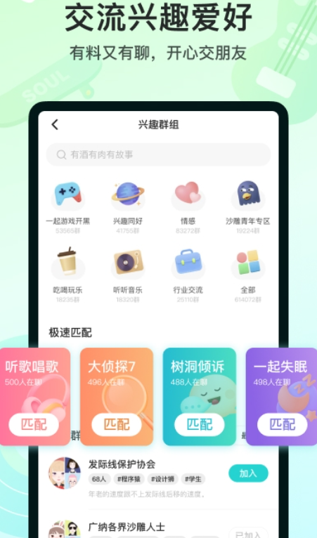 1、“Soul薦”算法,秒推懂你的人,隨時隨地聊天分享。