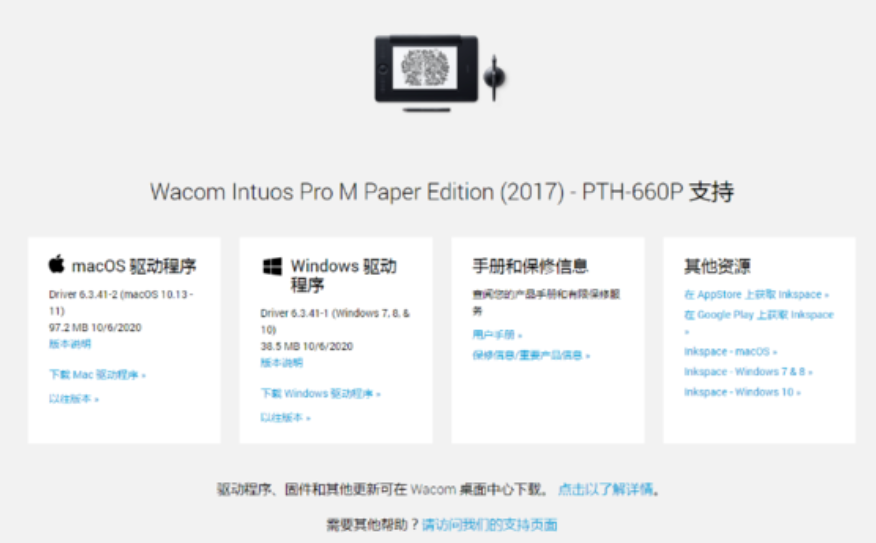進入wacom官網選擇相對應的驅動安裝下載即可: