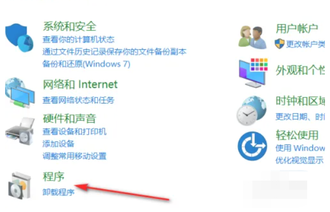 點擊進入控制面板之后,點擊進入程序頁面。