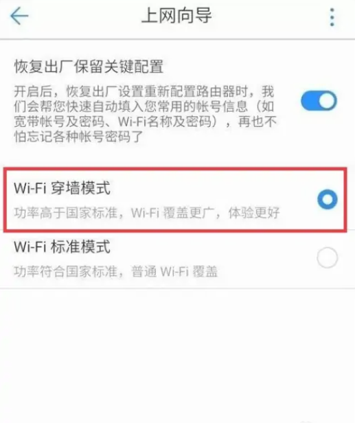 打開恢復出廠保留關鍵配置,默認選擇Wi-Fi穿墻模式。