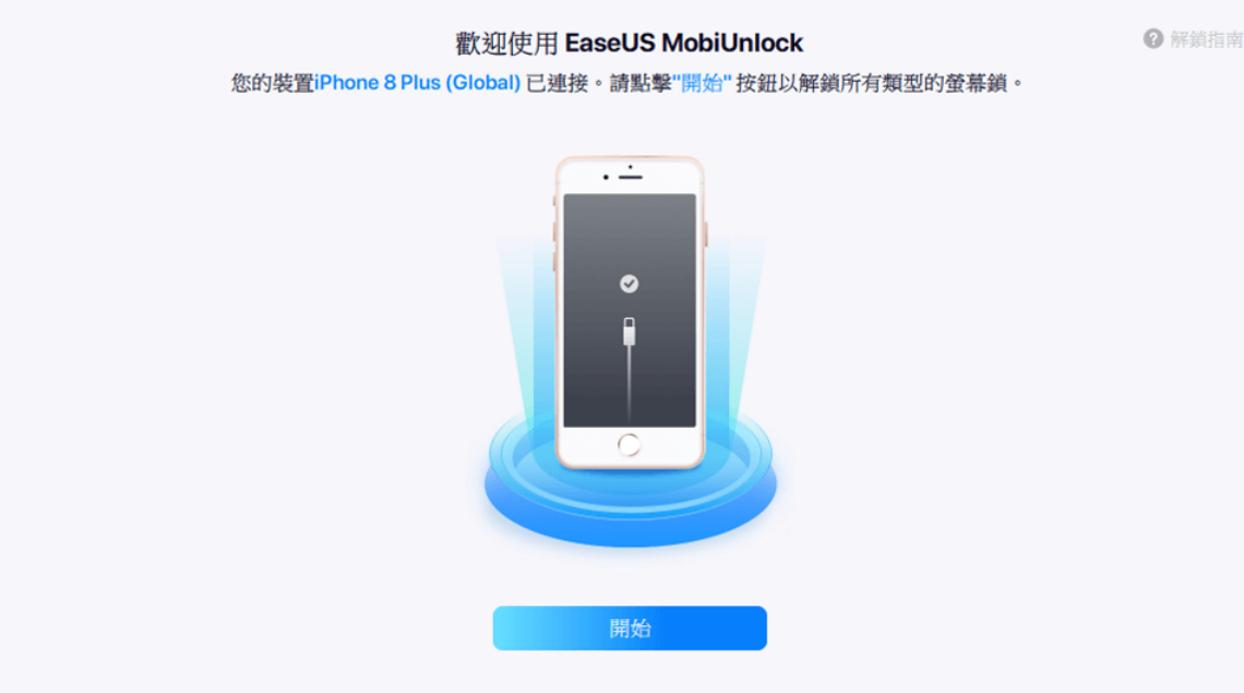 1、下載安裝 易我手機解鎖大師 ,將iOS設備連接到電腦,然后點擊「開始」。