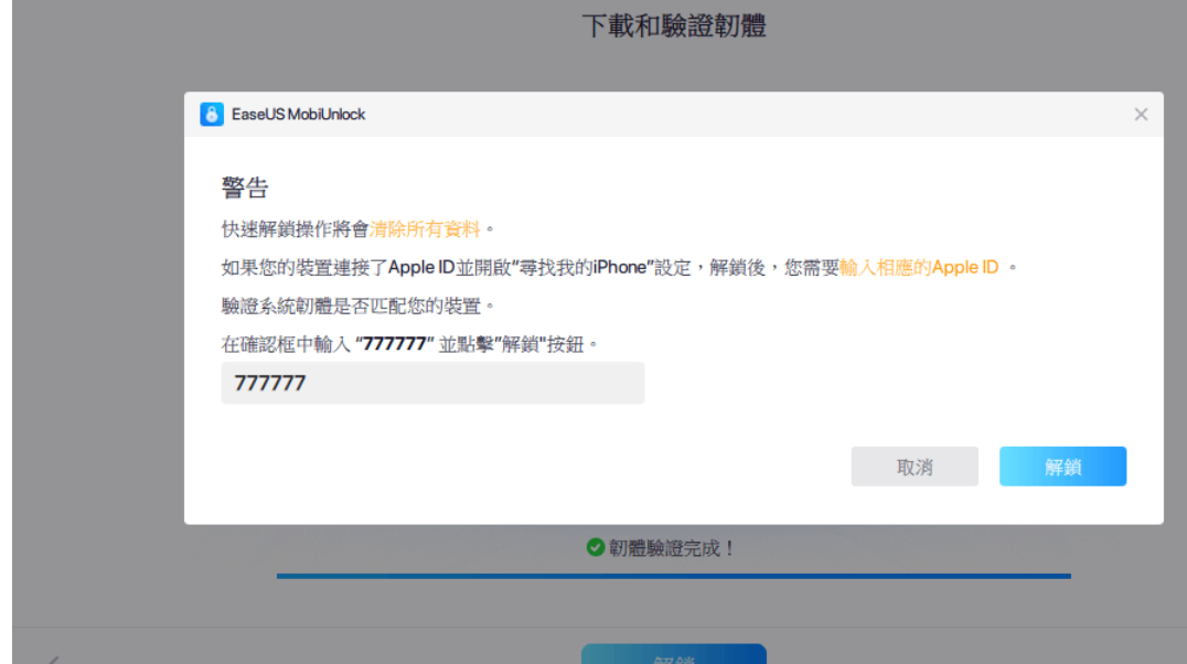 4、驗證完成后,點擊「解鎖」。在警告窗口中輸入所需信息,再次點擊「解鎖」即可解鎖。