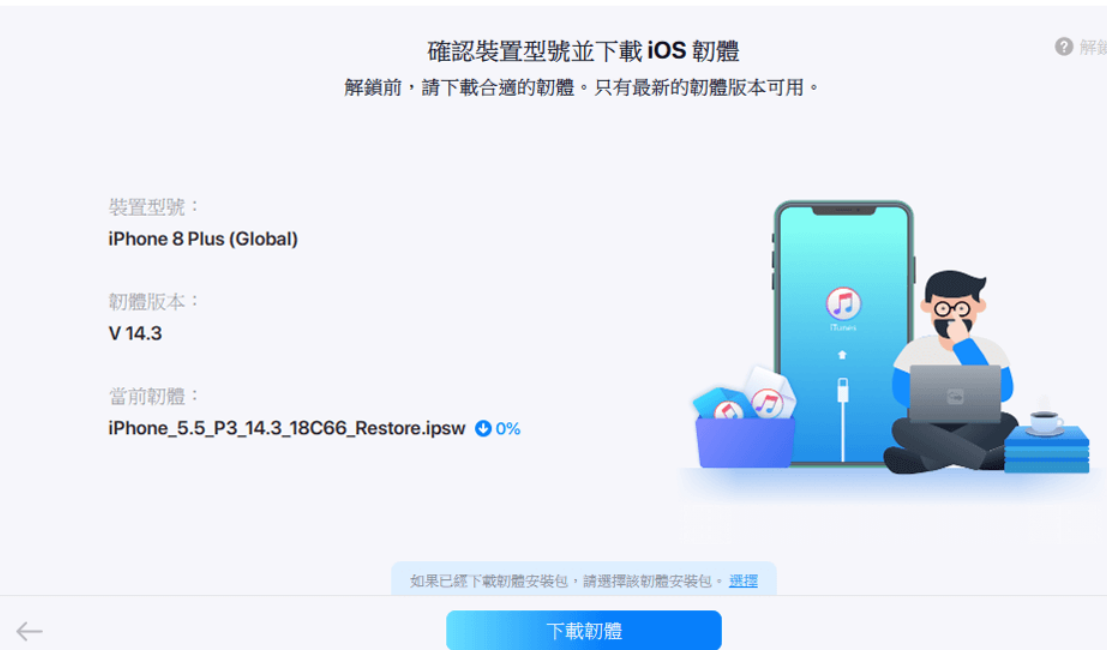 下載安裝 易我手機解鎖大師 ,將iOS設備連接到電腦,下載或選擇固件后,點擊「驗證固件」,等待完成。