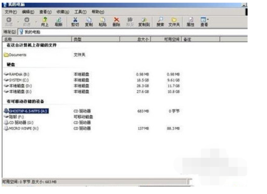 7、再用虛擬光驅載入系統鏡像后,“我的電腦”目錄里多了一個GHOSTXP-6.5NTFS的驅動器盤符,這就是即將要安裝的系統所在位置。