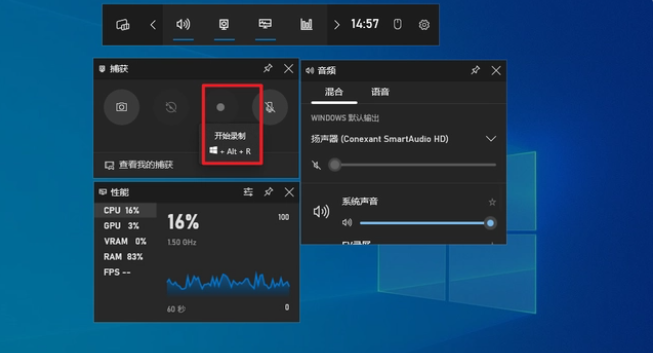 1、同時按下快捷鍵【Win+G】調出Xbox Game Bar的錄屏彈窗。