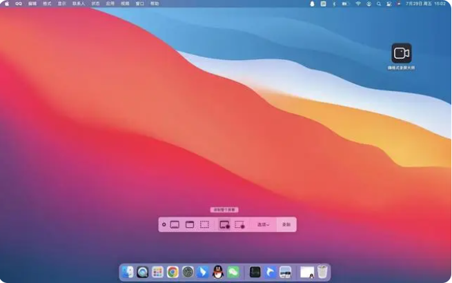 1、按蘋果電腦鍵盤快捷鍵【Shift+Command+5】,調出工具欄。