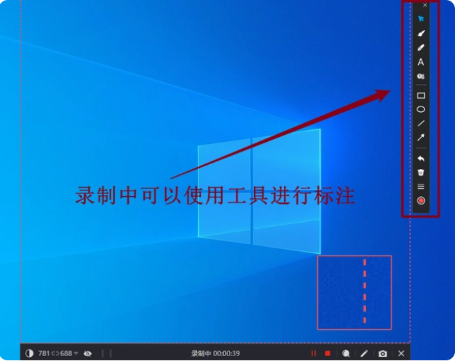 3、點擊工具欄最右側的“錄制按鈕”,這時就可以錄制整個屏幕。不過要注意的是,這個方法能調節錄制范圍,但不能錄制聲音。