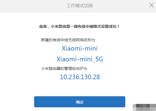 這樣就完成了小米路由器有線中繼,中繼后的無線密碼和管理密碼與中繼前的無線密碼和管理密碼一致。