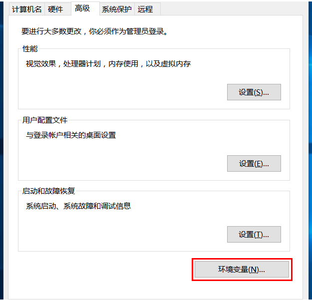 2、在屏幕彈出的“系統屬性”窗口界面中“高級”標簽頁下點擊“環境變量”。
