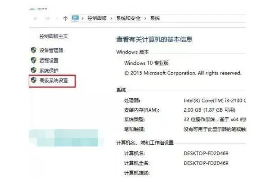 2、點擊打開屬性窗口,點擊左側的“高級系統設置”。