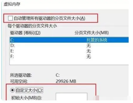 5、取消對“自動管理所有驅動器頁面大小”的勾選即可。