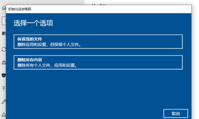 隨后自行選擇是不是保留文件,選擇完成后即可開始執行恢復出廠設置了。
