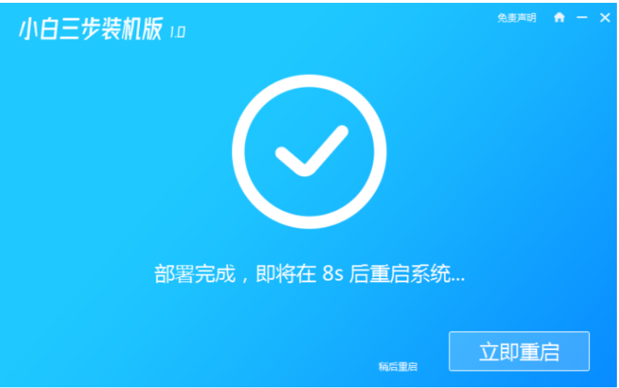 4.安裝完成后,點擊立即重啟。(這里的軟件會自動幫助我們重裝系統)