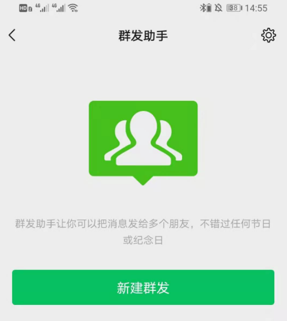 3、在界面中用戶需要點擊新建群發,開始用戶的群發消息程序界面中;